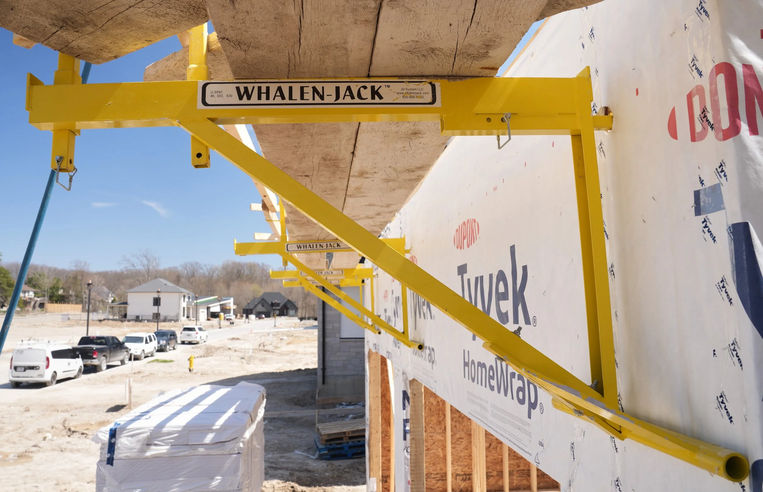 Lanyards protect workers from falls by connecting them to an anchor tied to the building. While they are effective as a fall arrest system, they do nothing to ease the construction process and in many cases can hinder freedom of movement. Whalen-Jack’s system protects workers from falls while giving them the mobility to finish building.
